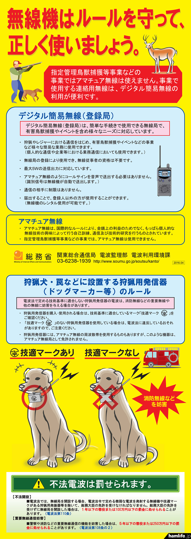 当局は、クリーンな電波利用環境を維持するため、今後も捜査機関との連携を図りながら、 不法無線局の取り締まりを強化していきます。